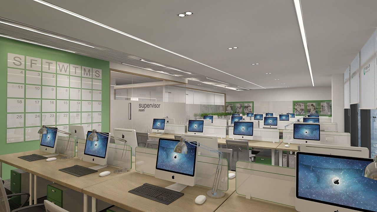 以線條和色彩構成作為辦公室設計最基本的元素,線條可以回應企業的文化及品牌特質,同時線與線之間的縫隙可以讓光穿過,避免空間形成黑房子,讓光線最大化地進入場所又能保持空間的美感。極簡的白和企業本來的綠色,用干凈的線條,設計出不平凡的藝術空間。